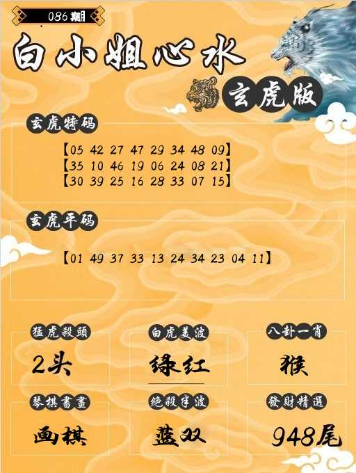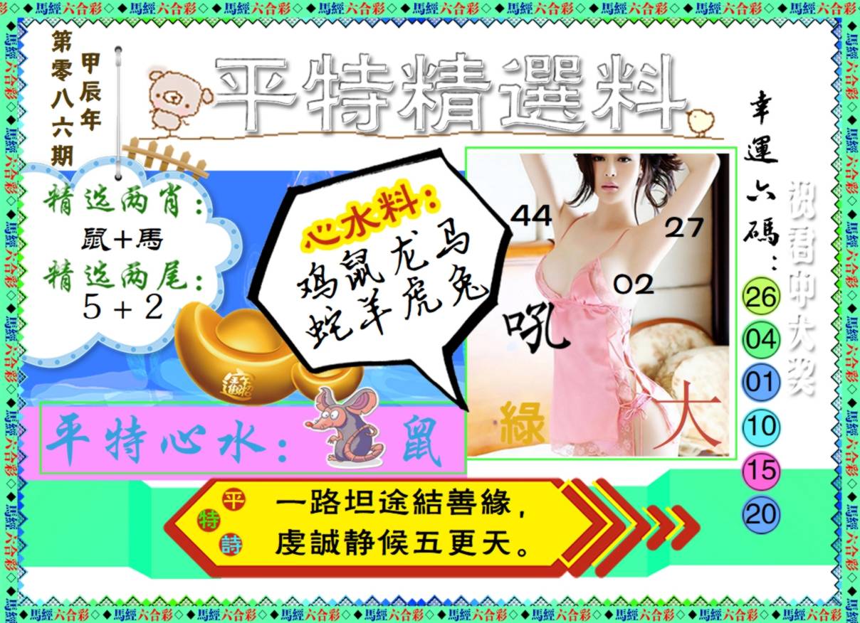 | 086期:必中平码【04 45 34 38 07】?00 |
